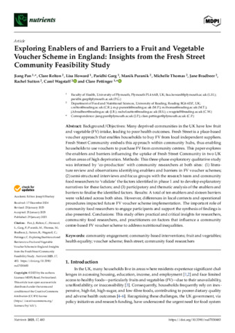 Exploring enablers of and barriers to a fruit and vegetable voucher scheme in England: insights from the Fresh Street Community feasibility study.