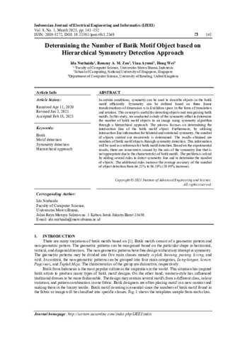 Determining the number of batik motif object based on hierarchical symmetry detection approach.