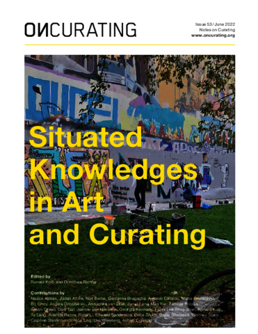 This issue gathers contributions that emerged from the conference and workshop “Situated Knowledges – Art and Curating on the Move” in June 2021 and exemplify the partiality and situatedness of one’s own position in our respective fields of expertise, within our educational frameworks and contact zones. The term “situated knowledges” coined by Donna Haraway declares that all scientific knowledge is fundamentally conditional. Against an assumption of the apparently neutral and unmediated knowledge of the (male, white) Western idea of science and its representation through totalizing visualization techniques, Haraway develops her concept of situated and embodied knowledges.