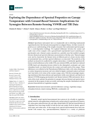Exploring the dependence of spectral properties on canopy temperature with ground-based sensors: implications for synergies between remote-sensing VSWIR and TIR data.