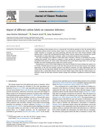| Uncontrolled Keywords | carbon label, climate information, consumer inference, front-of-pack label, sustainability label |