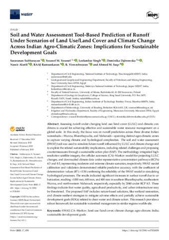 Soil and water assessment tool-based prediction of runoff under scenarios of land use/land cover and climate change across Indian agro-climatic zones: implications for sustainable development goals.