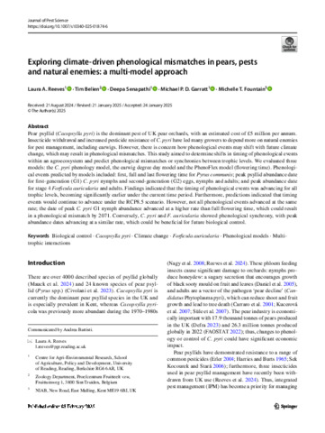 Exploring climate-driven phenological mismatches in pears, pests and natural enemies: a multi-model approach.