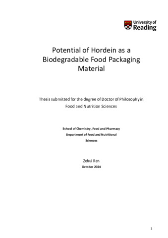 Ren, Z. (2025) Potential of hordein as a biodegradable food packaging material. PhD thesis, University of Reading. doi: 10.48683/1926.00120946