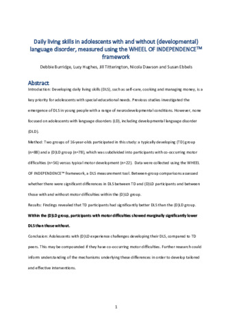 Daily living skills in adolescents with and without (developmental) language disorder, measured using the WHEEL OF INDEPENDENCETM framework.