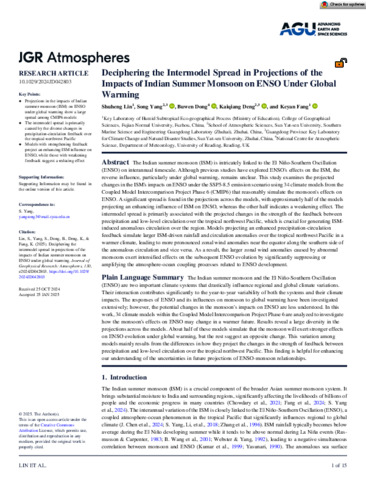 Deciphering the intermodel spread in projections of the impacts of Indian summer monsoon on ENSO under global warming.