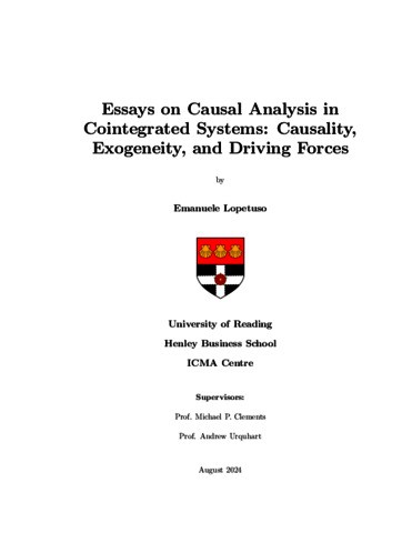 Lopetuso, E. (2025) Essays on causal analysis in cointegrated systems: causality, exogeneity, and driving forces. PhD thesis, University of Reading. doi: 10.48683/1926.00121796
