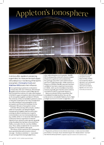 A century after Appleton’s pioneering experiment, his measurement techniques still underpin our monitoring of the Earth’s ionosphere. Christopher Scott and Matthew Wild assess their influence.