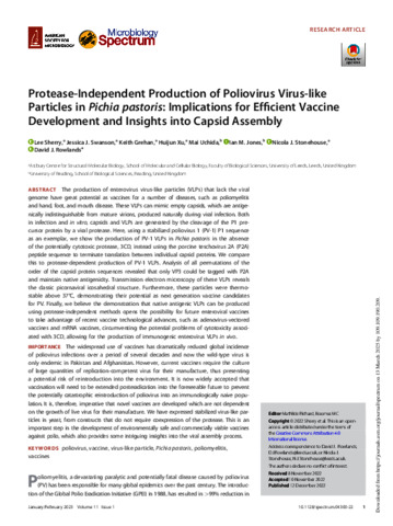 Protease-independent production of poliovirus virus-like particles in Pichia pastoris: implications for efficient vaccine development and insights into capsid assembly.