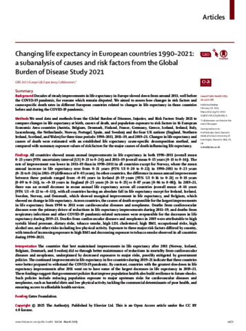 Changing life expectancy in European countries 1990-2021: a subanalysis of causes and risk factors from the Global Burden of Disease Study 2021.