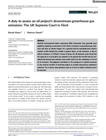 A duty to assess an oil project's downstream greenhouse gas emissions: the UK Supreme Court in Finch.