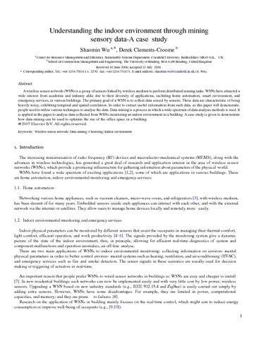 Uncontrolled Keywords wireless sensor network, data mining, clustering, indoor environment, ENERGY-CONSUMPTION, NETWORKS