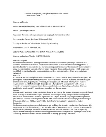 | Uncontrolled Keywords | accommodation, cues, hyperopia, photorefraction, infant, PLUSOPTIX VISION SCREENER, WELCH-ALLYN-SURESIGHT, CLINICAL-EVALUATION, PRESCHOOL-CHILDREN, AMBLYOGENIC FACTORS, CYCLOPLEGIC AUTOREFRACTION, MANIFEST REFRACTION, AUTO REFRACTOMETER, MTI PHOTOSCREENER, INFANTS |