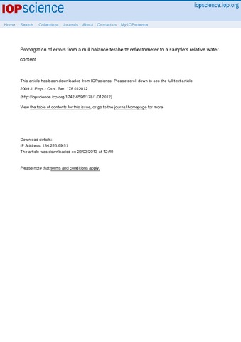 Hadjiloucas, S. orcid id iconORCID: https://orcid.org/0000-0003-2380-6114, Walker, G. C., Bowen, J. W. and Zafiropoulos, A. (2009) Propagation of errors from a null balance terahertz reflectometer to a sample's relative water content. Journal of Physics: Conference Series, 178 (1). 012012. ISSN 1742-6588 doi: 10.1088/1742-6596/178/1/012012