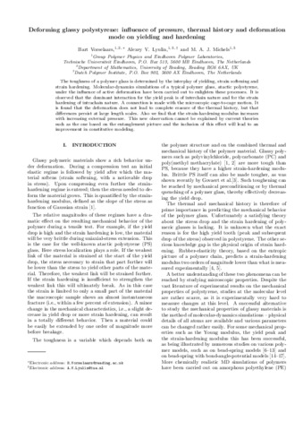 Vorselaars, B., Lyulin, A. V. and Michels, M. A. J. (2009) Deforming glassy polystyrene: Influence of pressure, thermal history, and deformation mode on yielding and hardening. The Journal of Chemical Physics, 130 (7). 074905. ISSN 0021-9606 doi: 10.1063/1.3077859