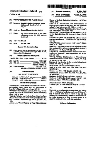 Zeneca Ltd (1995) Transformation of plant cells. US 5,464,765. doi: US 5,464,765