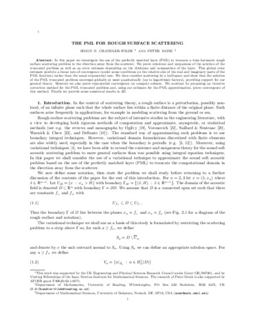 Chandler-Wilde, S. N. orcid id iconORCID: https://orcid.org/0000-0003-0578-1283 and Monk, P. (2009) The PML for rough surface scattering. Applied Numerical Mathematics, 59 (9). pp. 2131-2154. ISSN 0168-9274 doi: 10.1016/j.apnum.2008.12.007