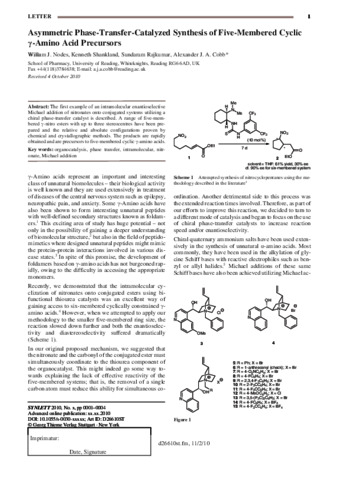Asymmetric phase-transfer-catalyzed synthesis of five-membered cyclic gamma-Amino acid precursors.