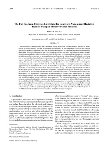 The full-spectrum correlated-k method for longwave atmospheric radiative transfer using an effective Planck function.