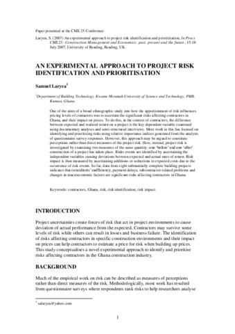 Laryea, S. A. (2007) An experimental approach to project risk identification and prioritization. In: Construction Management and Economics 25th Anniversary Conference, 15-18 July 2007, University of Reading, UK.