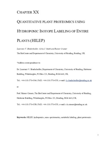 Quantitative plant proteomics using hydroponic isotope labeling of entire plants (HILEP).