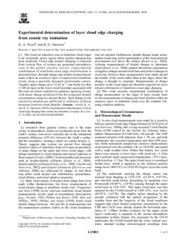 Experimental determination of layer cloud edge charging from cosmic ray ionisation.