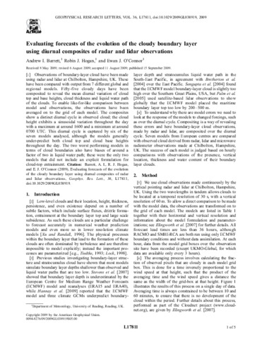 Evaluating forecasts of the evolution of the cloudy boundary layer using diurnal composites of radar and lidar observations.