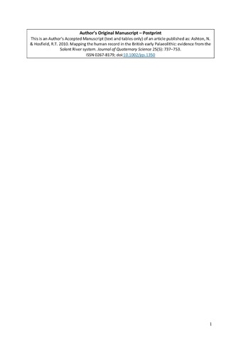 Ashton, N. and Hosfield, R. orcid id iconORCID: https://orcid.org/0000-0001-6357-2805 (2010) Mapping the human record in the British early Palaeolithic: evidence from the Solent River system. Journal of Quaternary Science, 25 (5). pp. 737-753. ISSN 0267-8179 doi: 10.1002/jqs.1350