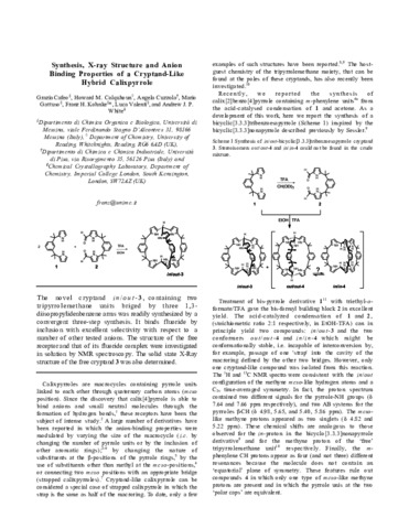 Cafeo, G., Colquhoun, H. M., Cuzzola, A., Gattuso, M., Kohnke, F. H., Valenti, L. and White, A. J. P. (2010) Synthesis, x-ray structure and anion binding properties of a cryptand-like hybrid calixpyrrole. Journal of Organic Chemistry, 75 (18). pp. 6263-6266. ISSN 1520-6904 doi: 10.1021/jo1010262