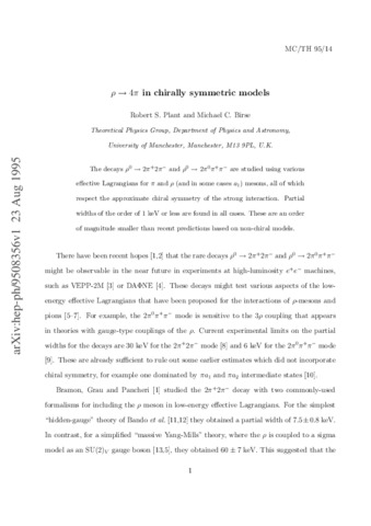 Plant, R. S. orcid id iconORCID: https://orcid.org/0000-0001-8808-0022 and Birse, M. C. (1996) ϱ → 4π in chirally symmetric models. Physics Letters B, 365 (1-4). pp. 292-296. ISSN 0370-2693 doi: 10.1016/0370-2693(95)01273-7