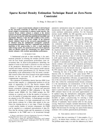Hong, X. orcid id iconORCID: https://orcid.org/0000-0002-6832-2298, Chen, S. and Harris, C. J. (2010) Sparse kernel density estimation technique based on zero-norm constraint. In: The 2010 International Joint Conference on Neural Networks (IJCNN). IEEE, pp. 3782-3787. ISBN 9781424469161 doi: 10.1109/IJCNN.2010.5596853