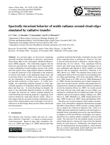 Chiu, J. C., Marshak, A., Knyazikhin, Y. and Wiscombe, W. J. (2010) Spectrally-invariant behavior of zenith radiance around cloud edges simulated by radiative transfer. Atmospheric Chemistry and Physics, 10 (22). pp. 11295-11303. ISSN 1680-7316 doi: 10.5194/acp-10-11295-2010