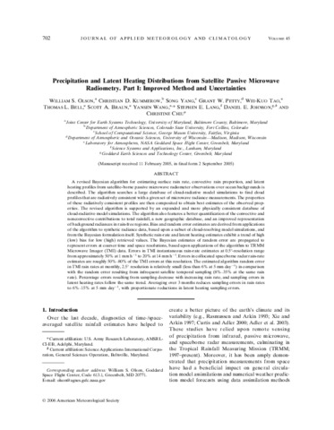 Olson, W.S., Kummerow, C.D., Yang, S., Petty, G.W., Tao, W.-K., Bell, T.L., Braun, S.A., Wang, Y., Lang, S.E., Johnson, D.E. and Chiu, J. C. (2006) Precipitation and latent heating distributions from satellite passive microwave radiometry. Part I: improved method and uncertainties. Journal of Applied Meteorology and Climatology, 45 (5). pp. 702-720. ISSN 1558-8424 doi: 10.1175/JAM2369.1