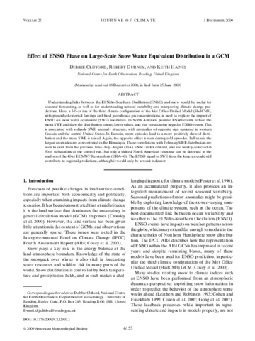 Effect of ENSO phase on large-scale snow water equivalent distribution in a GCM.