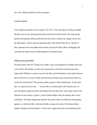 Bignell, J. orcid id iconORCID: https://orcid.org/0000-0003-4874-1601 (2010) Star Wars (1977): back and forth in time and space. In: Brown, T. and Walters, J. (eds.) Film moments: criticism, history, theory. British Film Institute and Palgrave, London, UK, pp. 111-115. ISBN 9781844573363