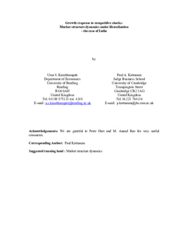Growth responses to competitive shocks: market structure dynamics under liberalisation.
