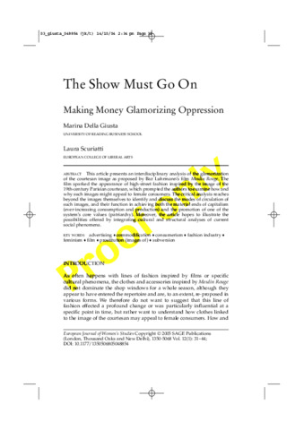 Della Giusta, M. orcid id iconORCID: https://orcid.org/0000-0003-3959-4451 and Scuriatti, L. (2005) The show must go on: making money glamorizing oppression. European Journal of Women’s Studies, 12 (1). pp. 31-44. ISSN 1461-7420 doi: 10.1177/1350506805048854