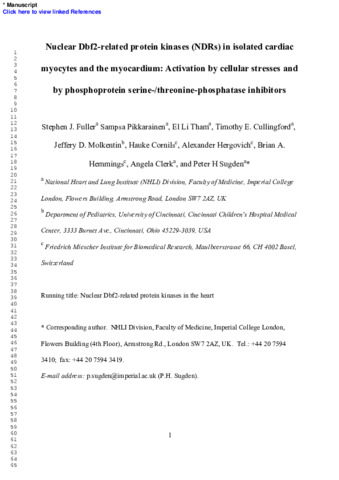 Nuclear Dbf2-related protein kinases (NDRs) in isolated cardiac myocytes and the myocardium: activation by cellular stresses and by phosphoprotein serine-/threonine-phosphatase inhibitors.