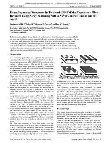 O'Driscoll, B. M. D., Newby, G. E. and Hamley, I. W. orcid id iconORCID: https://orcid.org/0000-0002-4549-0926 (2011) Phase separated structures in tethered dPS–PMMA copolymer films revealed using X-ray scattering with a novel contrast enhancement agent. Polymer Chemistry, 2 (3). pp. 619-624. ISSN 1759-9954 doi: 10.1039/C0PY00289E