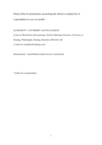 Plastic films for polytunnels can prolong the effective residual life of cypermethrin to over 6 months