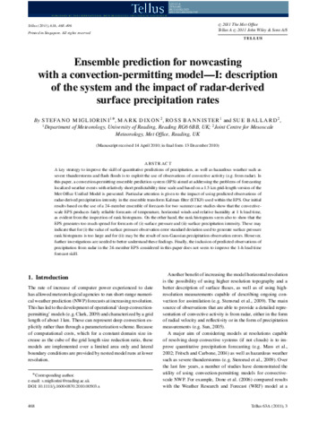 Ensemble prediction for nowcasting with a convection-permitting model—I: description of the system and the impact of radar-derived surface precipitation rates.