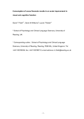 Consumption of cocoa flavanols results in an acute improvement in visual and cognitive functions