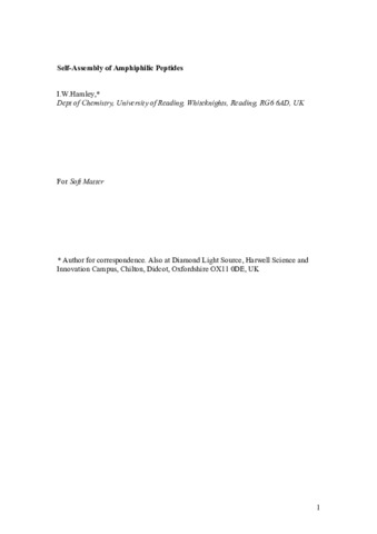 Hamley, I. orcid id iconORCID: https://orcid.org/0000-0002-4549-0926 (2011) Self-assembly of amphiphilic peptides. Soft Matter, 7 (9). pp. 4122-4138. ISSN 1744-683X doi: 10.1039/c0sm01218a