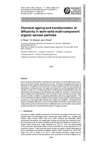 Pfrang, C., Shiraiwa, M. and Pöschl, U. (2011) Chemical ageing and transformation of diffusivity in semi-solid multi-component organic aerosol particles. Atmospheric Chemistry and Physics Discussions, 11 (4). pp. 13003-13033. ISSN 1680-7375 doi: 10.5194/acpd-11-13003-2011
