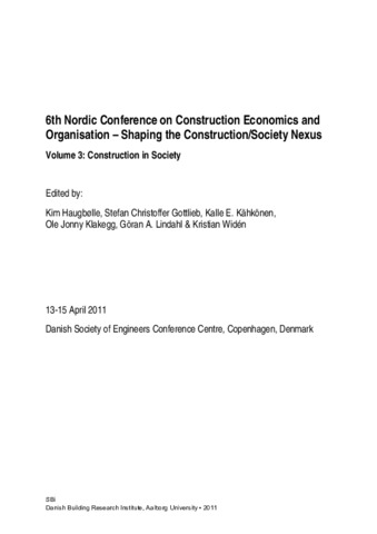 In: 6th Nordic Conference on Construction Economics and Organisation, 13-16 April 2011, Copenhagen, Demmark, pp. 577-586.