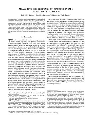 Shields, K., Olekalns, N., Henry, Ó. T. and Brooks, C. orcid id iconORCID: https://orcid.org/0000-0002-2668-1153 (2005) Measuring the response of macroeconomic uncertainty to shocks. Review of Economics and Statistics, 87 (2). pp. 362-370. ISSN 1530-9142 doi: 10.1162/0034653053970276