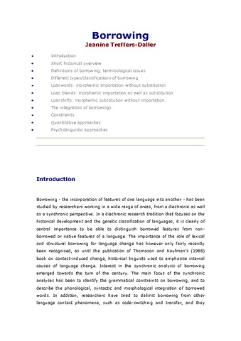 This handbook article gives an overview of the ways in which borrowing has been studied in different languages.