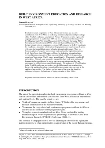 Built environment programmes in West African universities; and research contributions from West Africa in six leading international journals and proceedings of the WABER conference are explored. At least 20 universities in the region offer degree programmes in Architecture (86% out of 23 universities); Building (57%); Civil Engineering (67%); Estate Management (52%); Quantity Surveying (52%); Surveying and Geoinformatics (55%); Urban and Regional Planning (67%). The lecturer-student ratio on programmes is around 1:25 compared to the 1:10 benchmark for excellence. Academics who teach on the programmes are clearly research active with some having published papers in leading international journals. There is, however, plenty of scope for improvement particularly at the highest international level. Out of more than 5000 papers published in six leading international peer-reviewed journals since each of them was established, only 23 of the papers have come from West Africa. The 23 papers are published by 28 academics based in 13 universities. Although some academics may publish their work in the plethora of journals that have proliferated in recent years, new generation researchers are encouraged to publish in more established journals. The analyses of 187 publications in the WABER conference proceedings revealed 18 research-active universities. Factors like quality of teaching, research and lecturer-student ratio, etc count in the ranking of universities. The findings lay bare some of the areas that should be addressed to improve the landscape of higher education in West Africa.