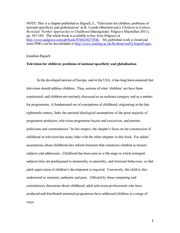 Uncontrolled Keywords | children, childhood, television, globalisation, globalization |