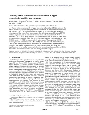 Clear-sky biases in satellite infrared estimates of upper tropospheric humidity and its trends.